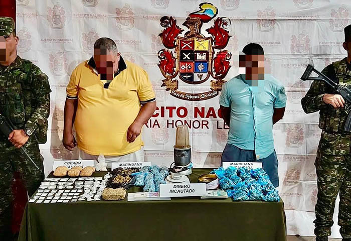 En el barrio Tierra Prometida del municipio de Valledupar, Cesar, tropas del Batallón de Artillería de Campaña N.º 2 La Popa de la Décima Brigada en un trabajo interinstitucional con el Cuerpo Técnico de Investigación (CTI), lograron la captura en flagrancia de dos sujetos por el delito de tráfico, fabricación o porte de estupefacientes.