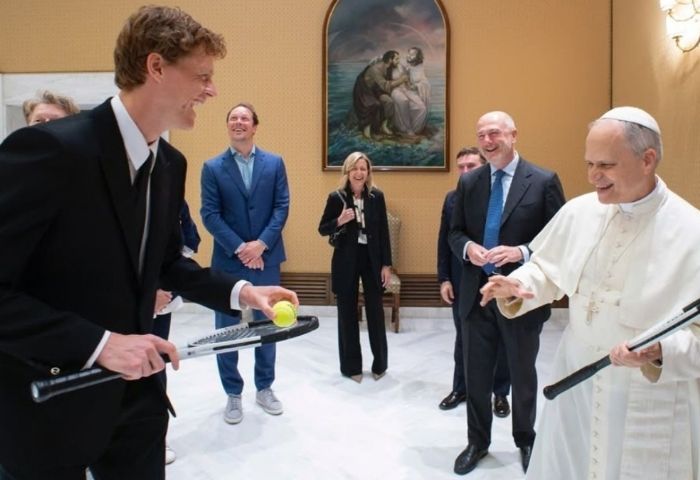 Por otra parte, la agencia Vatican News se encargó de divulgar las fotografías de este momento. Allí se puede observar cuando Sinner le regala una raqueta al sumo pontífice de la Iglesia Católica, teniendo en cuenta su afición por el tenis, algo que confesó antes de ser ordenado el pasado 8 de mayo.