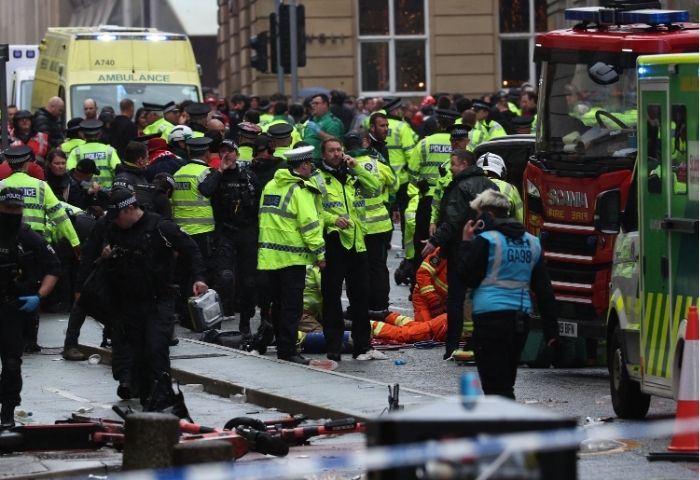 Las primeras imágenes muestran a los servicios de emergencia en el lugar y la zona acordonada con cinta adhesiva y barreras metálicas en las calles donde el Liverpool FC había organizado un desfile para celebrar su triunfo en la Premier League.