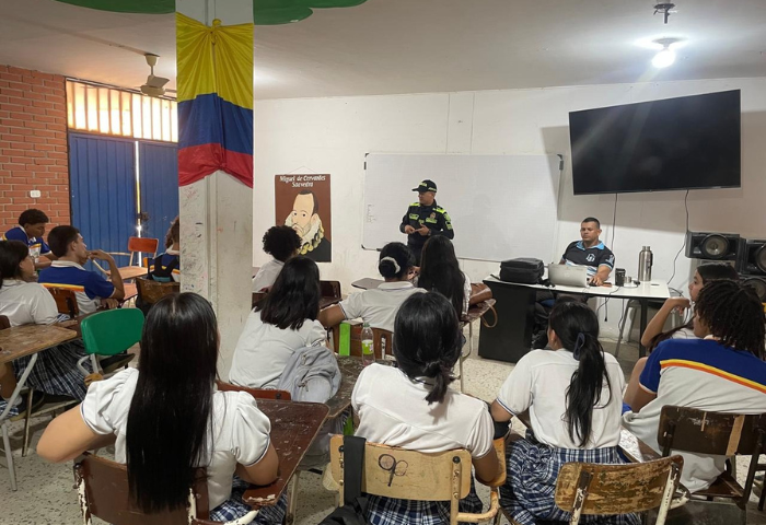 La actividad fue liderada por el Grupo de Protección a la Infancia y Adolescencia, en coordinación con el Grupo de Protección al Turismo y Patrimonio Nacional y la Comisaría de Familia. Durante la jornada, los estudiantes participaron en una conferencia orientada a evitar conductas que puedan derivar en agresiones dentro del entorno escolar, así como en la socialización de las consecuencias legales contempladas en el Sistema de Responsabilidad Penal para Adolescentes.