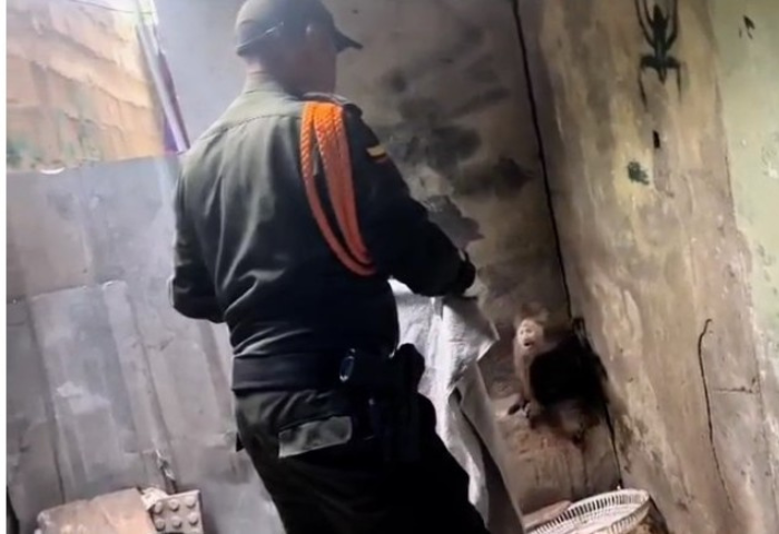 Gracias a una denuncia ciudadana, la Policía Nacional rescató a un mono cara blanca, que mantenían en cautiverio en una vivienda del barrio Los Manguitos, en el municipio de Becerril, Cesar.
