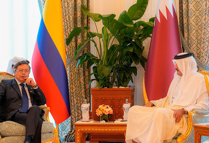 Gustavo Petro, presidente de Colombia, y Tamim bin Hamad Al Thani, emir de Catar, sostuvieron una reunión en la que abordaron los diálogos con el Ejército de Liberación Nacional (ELN) y el Clan del Golfo, con el objetivo de alcanzar la paz en el Caribe, según afirmó el mandatario colombiano.