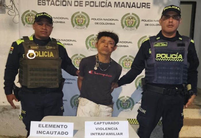 Unidades de la Policía Nacional lograron la captura en flagrancia de un hombre señalado por el delito de violencia intrafamiliar, tras una oportuna intervención en el barrio Las Marías, municipio de Manaure, Cesar.