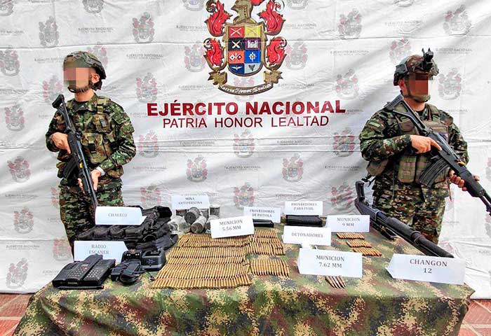 El Ejército Nacional informó, a través de un comunicado oficial, que durante acciones militares adelantadas en las últimas horas en zona rural del municipio de Dibulla, jurisdicción del departamento de La Guajira, se logró una importante incautación de material de guerra que sería utilizado por integrantes del grupo armado ilegal conocido como ‘Los Pachencas’.