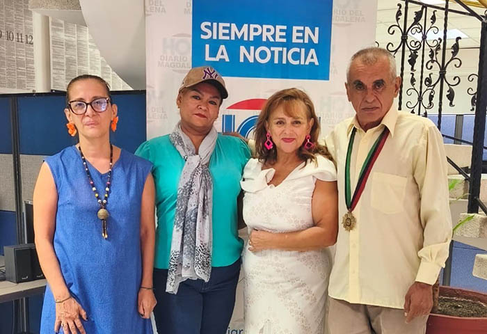 María Alexandra Martínez, Yaneth Bedoya, Ana Zoraida Quiñones Ortiz y Eduardo Castillo, durante su visita en la sede de HOY DIARIO DEL MAGDALENA, para promover la construcción de un hogar de paso para los habitantes de calle.