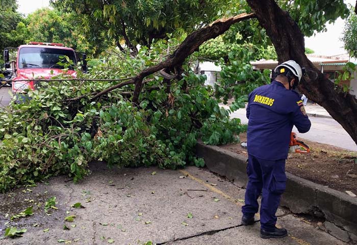 Unidades del Cuerpo de Bomberos, realizaron labores de remoción de árboles y despejaron las vías para restablecer la movilidad en las zonas afectadas.