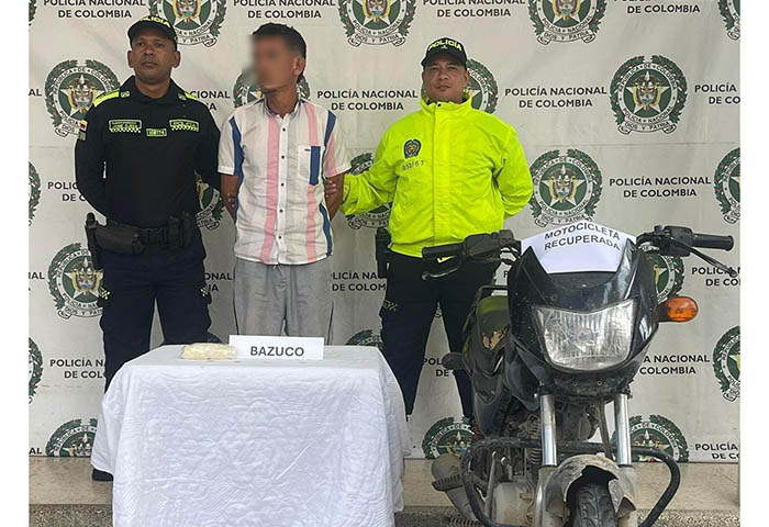 Tras verificar antecedentes del vehículo, se estableció que su número de motor presentaba una denuncia por el delito de hurto, requerida por la Fiscalía 10 Local de San Alberto, Cesar, la cual había sido sustraída en Aguachica en el año 2022. Asimismo, se le hallaron en su poder 220 gramos de bazuco.