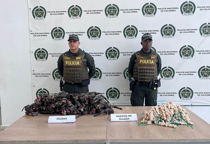 En desarrollo de acciones orientadas a la protección de los recursos naturales y la preservación de la biodiversidad, la Policía Nacional logró la incautación de 41 iguanas muertas y 850 huevos de esta especie, en un procedimiento adelantado en zona rural.