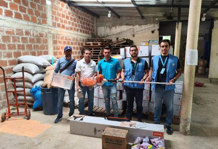 Añadió que, las familias de las veredas Costa Rica I, Costa Rica II, Nuevo Horizonte, Casa de Zinc, El Cairo, Las Mariposas, La Honda, Casa e’ Tabla, de las asociaciones Asoanei, Asoprocae y Asovucam recibieron herramientas, como guadañas, para trabajar sus cultivos de café.