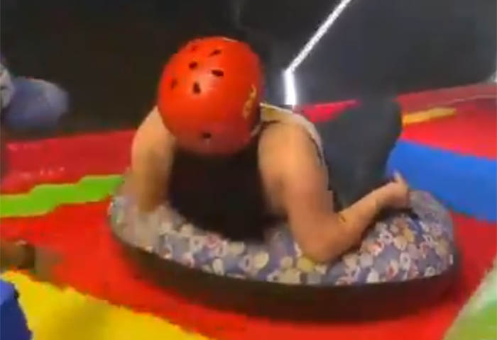 En redes sociales comenzó a circular un video que muestra a la mujer segundos antes del accidente. En las imágenes se observa que estaba sentada sobre un inflable mientras descendía por la estructura. También se aprecia que llevaba un casco de seguridad durante el recorrido.