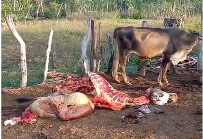 El caso más reciente, ocurrido en la madrugada del 31 de marzo, un pequeño ganadero halló en su propiedad los restos de tres reses que habían sido sacrificadas durante la noche. Uno de los animales, además, se encontraba en estado de gestación.